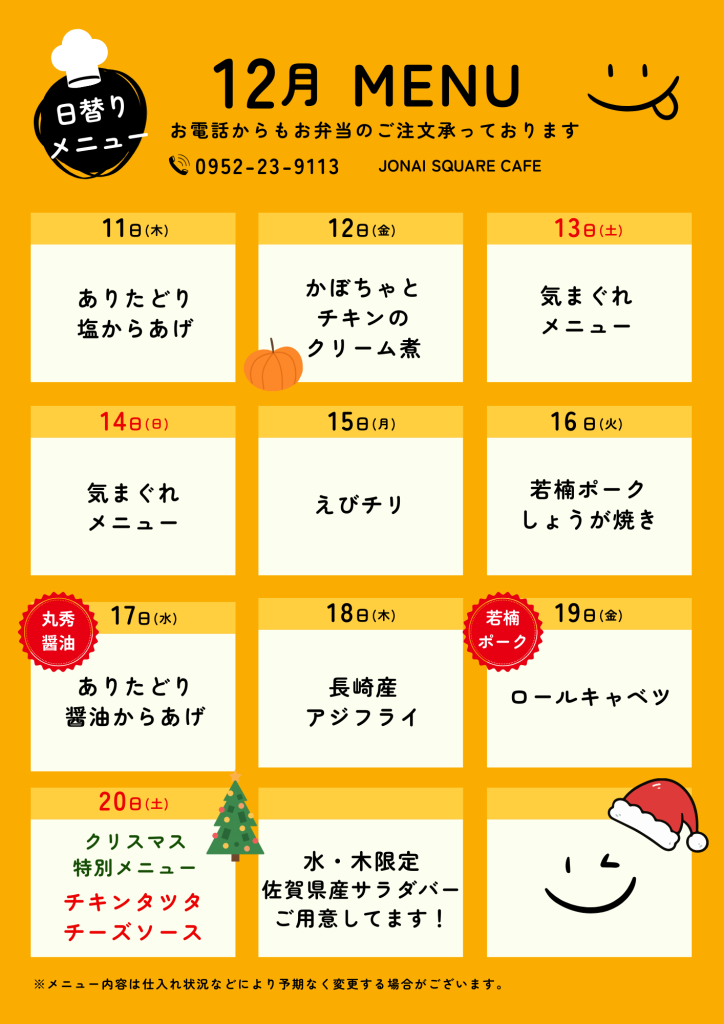 12月の日替わりメニュー♪