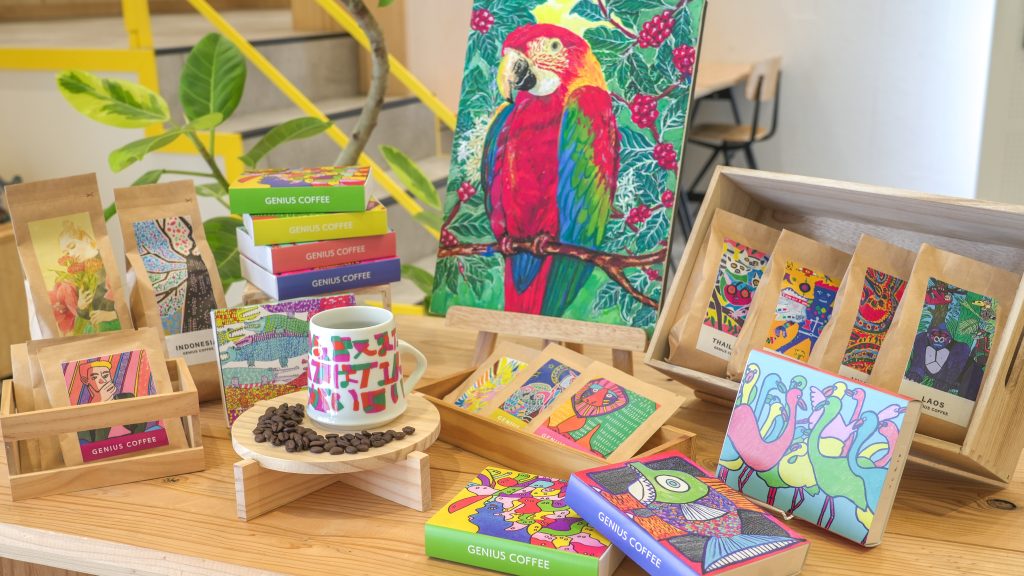 GENIUSLABは、アトリエ、アートギャラリー、コーヒー焙煎スペース、オリジナルグッズショップを併設したクリエイティブ拠点。 300点以上のアート作品が並ぶ空間で、障がいのあるアーティストたちが日々制作を行っています。 今回のイベントでは、そんな才能あふれるアーティストたちの多彩な作品を展示・販売するほか、世界各国からセレクトした自家焙煎のスペ シャルティコーヒー 10種の販売、オリジナルブレンドコーヒーが作れるワークショップを開催します。 秋の空気に似合う、やさしい香りとあたたかな色に包まれながら、ここでしか味わえないコーヒーとアートの出会いを体験してください。